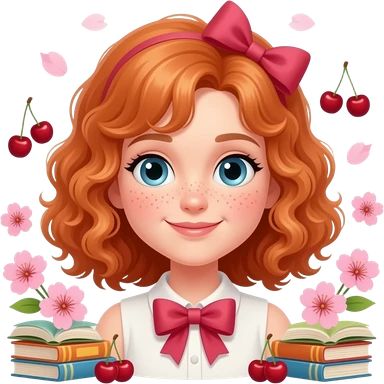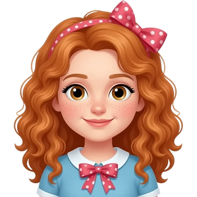 Fille rousse bouclés tâches de rousseur 🎀🌸📚 emoji