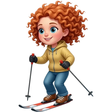 Fille rousse bouclés tâches de rousseur ski emoji