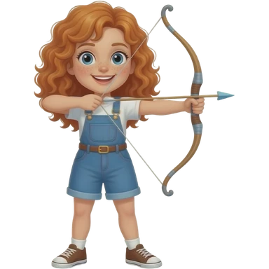 Fille rousse bouclés tâches de rousseur tir à l'arc emoji