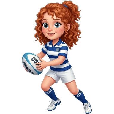 Fille rousse bouclés tâches de rousseur rugby emoji