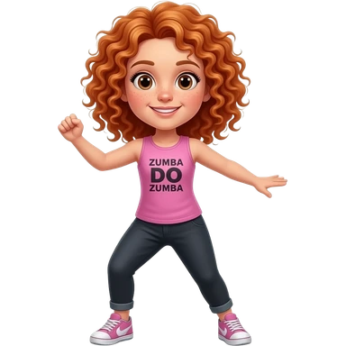Fille rousse bouclés tâches de rousseur Zumba emoji