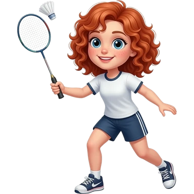 Fille rousse bouclés tâches de rousseur badminton emoji