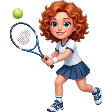 Fille rousse bouclés tâches de rousseur tennis emoji