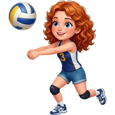 Fille rousse bouclés tâches de rousseur volley-ball emoji