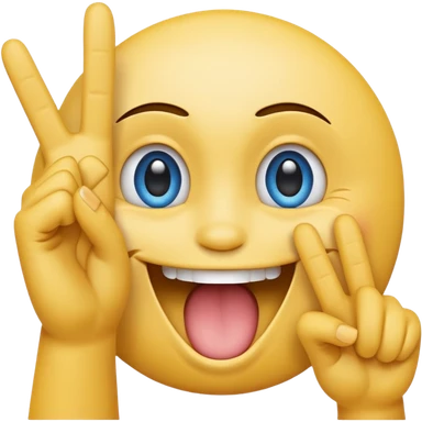 Yellow face emoji , with black mouth mask on it half lower skull , with hand sign like winner but second finger is open and third finger is closed emoji