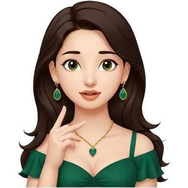 pretty bratz genmoji that, wearing a dark green sweetheart neckline top, dark brown hair, light makeup, no necklace, dangly earrings, SIDE hair part, fair. dark brown eyes, long hair SHe should look like tamannaah bhatia - bollywood actress Show her licking her finger emoji