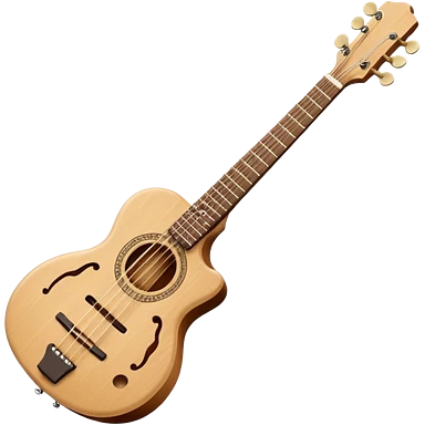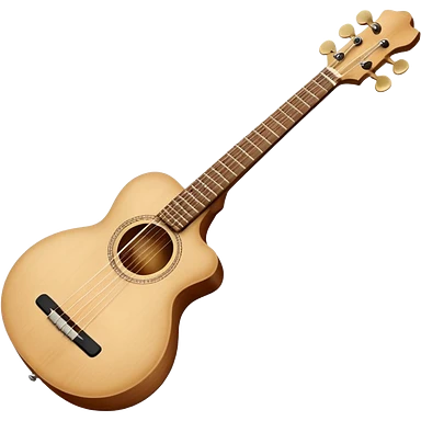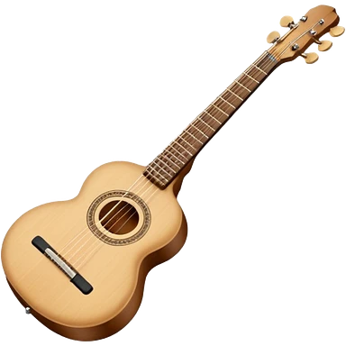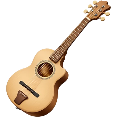 Create an elegant and traditional emoji representing a domra. The design should feature the round, wooden body of the domra with its distinct three or four strings. Include delicate details like the tuning pegs, the fingerboard, and the bridge. The wood of the domra should have a rich, warm tone, and the strings should be subtly highlighted to show their importance. Add a small musical note or two floating around to evoke the folk music it is used for. Use earthy tones like brown and gold to emphasize its classic, rustic feel. The background should be transparent. emoji