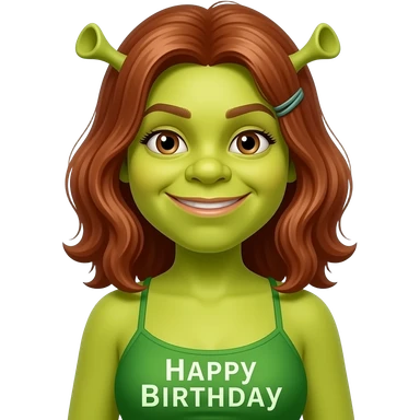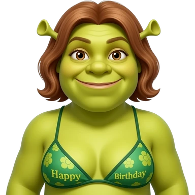 Fiona from Shrek wearing green bikini bathers with happy birthday written at the bottom can you make her fat emoji