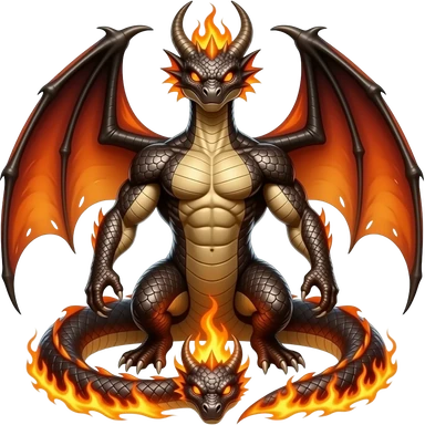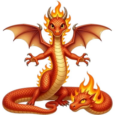 fire serpent with a head, dragon wings and arms and another head in the tail emoji