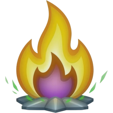 Fire: “Burning flame element in golden yellow with purple base and green sparks, transformative mystical symbol, flat vector illustration” emoji