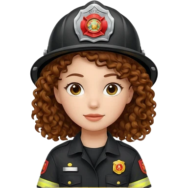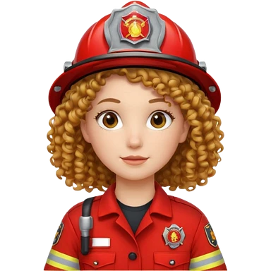 Firefighter girl curly hair with red uniform emoji | AI Emoji Generator