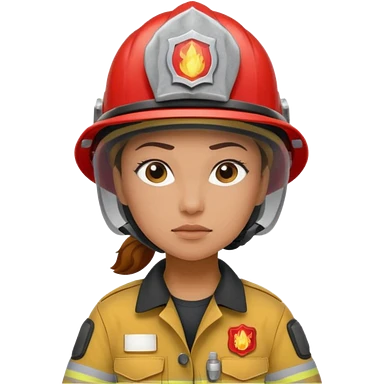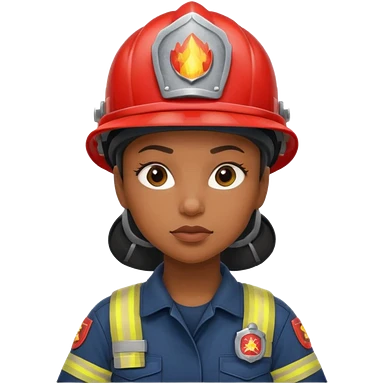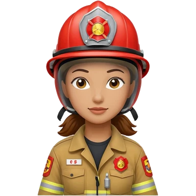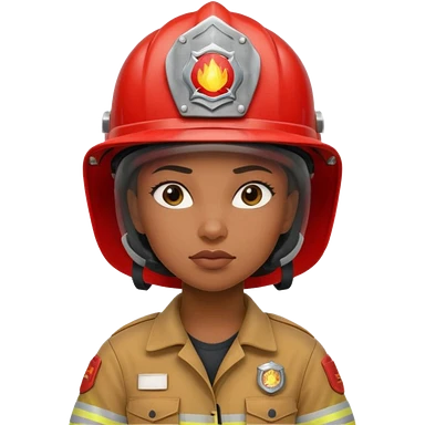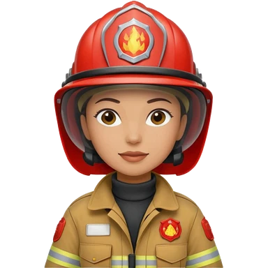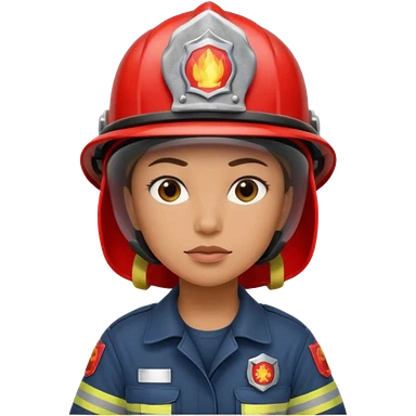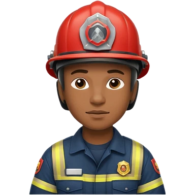 3D cartoon-style firefighter in the Apple emoji style, wearing a bright red fireproof uniform and matching helmet emoji