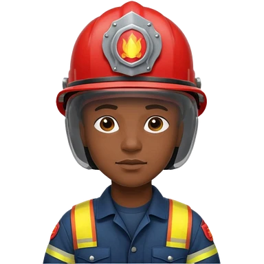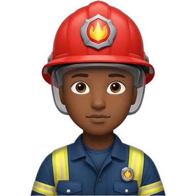 Young, male, dark skin, wearing sunglasses, firefighter uniform, happy emoji