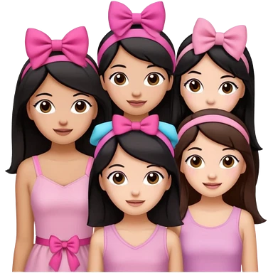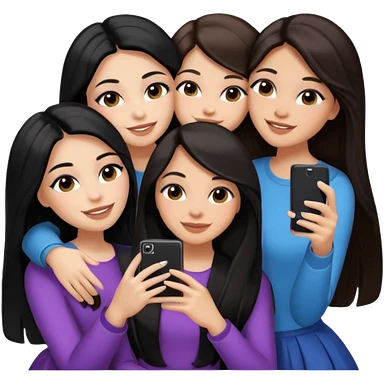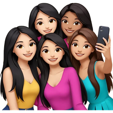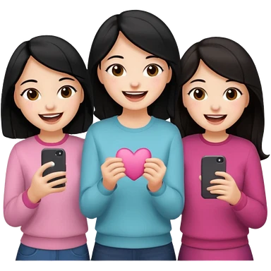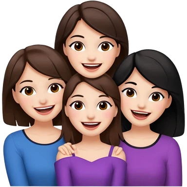 3 friends having fun, one with black hair, 2 with brown hair, girly style emoji