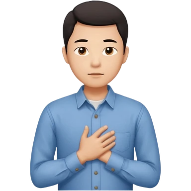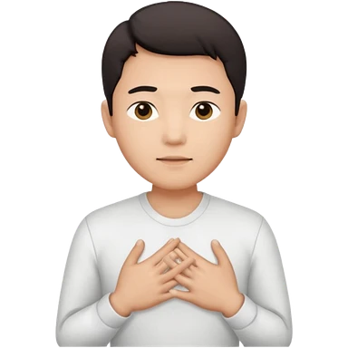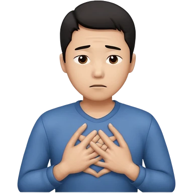 first asian man put his hands on his chest where his heart is, to showw howw he feeel emoji | AI Emoji Generator