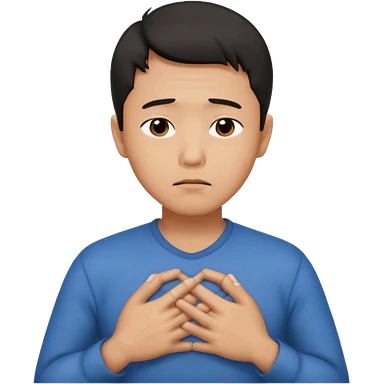 first asian man put his hands on his chest where his heart is, to showw howw he feeels. With a sad exxpression emoji