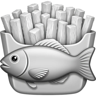 Fish and chips but black and white emoji
