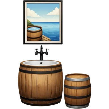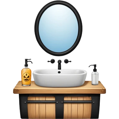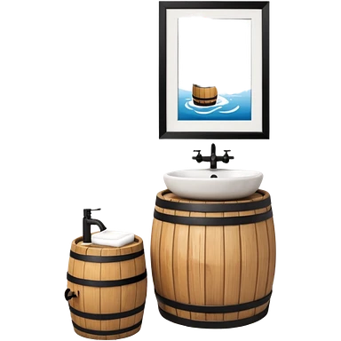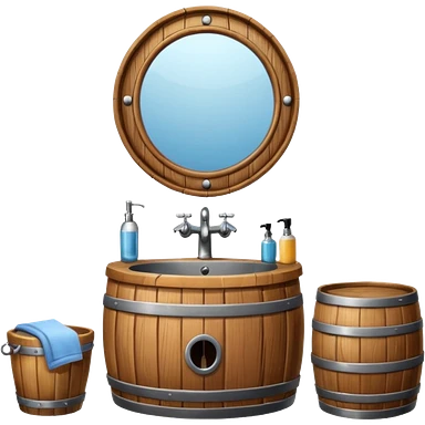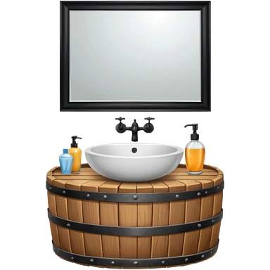 sink on a barrel bathroom with mirror emoji
