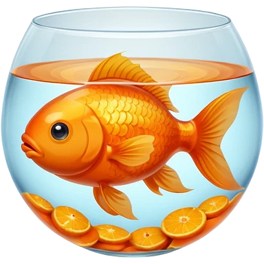 Hyperrealistic, ultra detailed, translucent fish bowl with very pale blue realistic water, bright, vivid colored goldfish, swimming in the water, still life, upclose view. 4k hd quailty, 8000x8000px resolution. No emoji icons, no emoji faces emoji