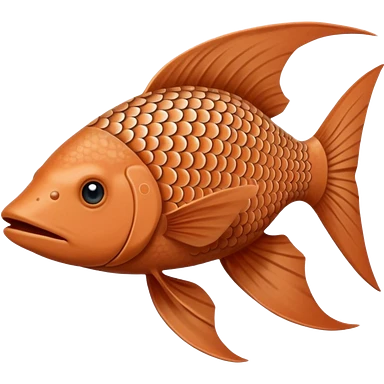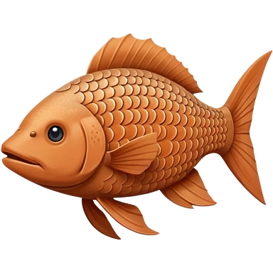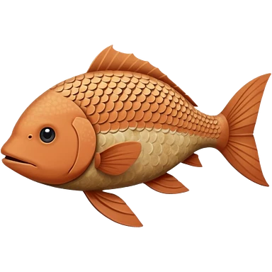 Fish. Longer, thinner body covered in dusty terracotta scales with a rough, sandpaper-like texture. Fins are smaller and more rigid, adapted for digging through mud. Dull brown and tan coloring with sandy patterns. long whiskers. very long, thin body. pokemon style. emoji