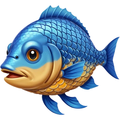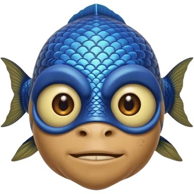 A fish man dressed in a black suit. Its face is grey fish emoji