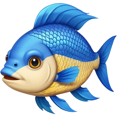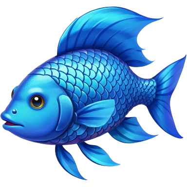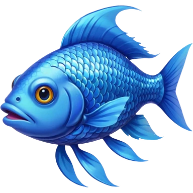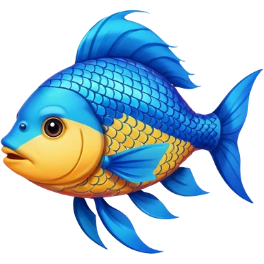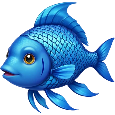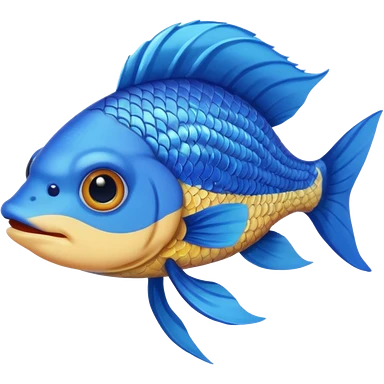 handsome fish with blue hair and fins of different color looking into camera emoji