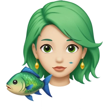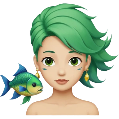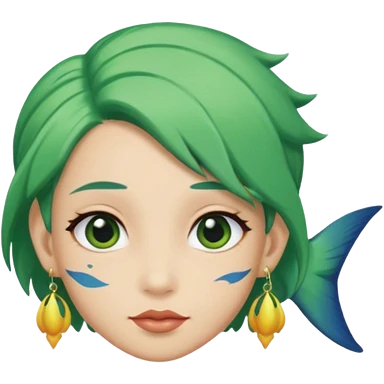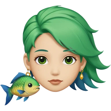 earring wearing fish with green hair emoji