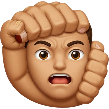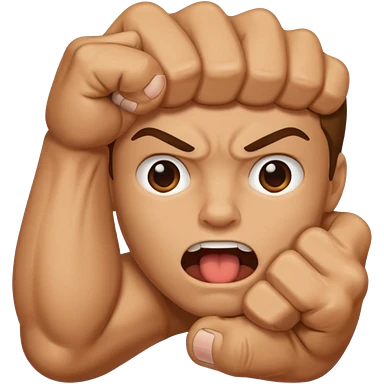 Fist around mouth, eyes closed & bulge in mouth emoji