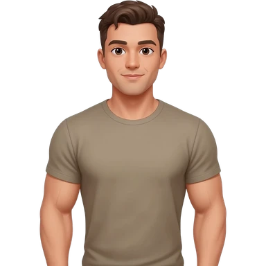 Fit muscular man with t shirt and light brown skin emoji