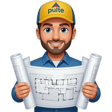 blue rolled-up blueprint plan with visible white lines, side perspective emoji