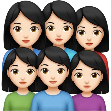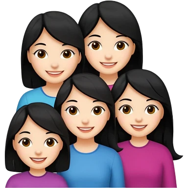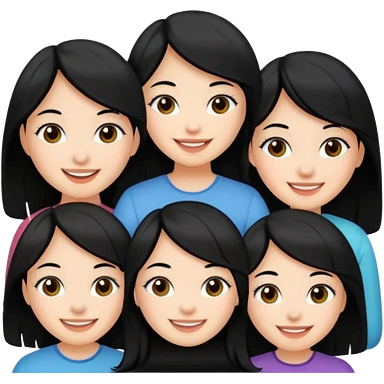 Five fair-skinned girls with black hair emoji