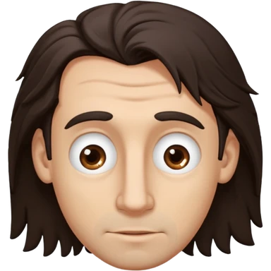 Handsome white man with big brown eyes long nose and dark brown messy hair cover his forhead and hair coming in eyes oval facecut emoji