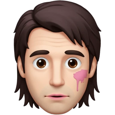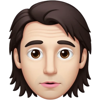 Handsome white man with big brown eyes thin pink lips long nose and dark brown messy hair cover his forhead eyes emoji