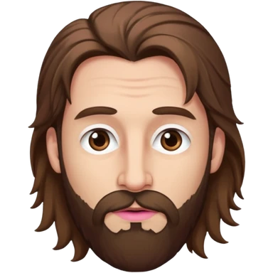 Handsome white man with big brown eyes thin pink lips long nose and long brown messy hair low beard emoji