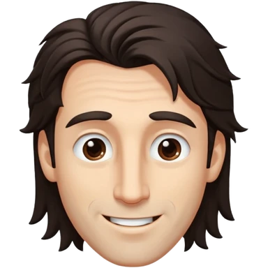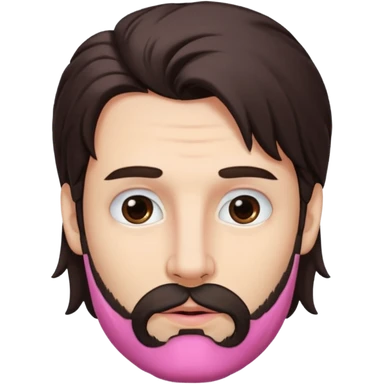 Handsome white man with big brown eyes thin pink lips long nose and dark brown messy hair low beard emoji