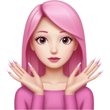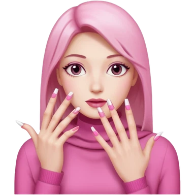 White skin pink and white square tip long nails emoji