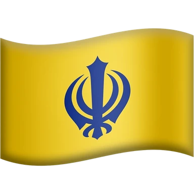Flag is full yellow and in the middle a sikh logo khanda in blue color and botton of khanda write khalistan emoji