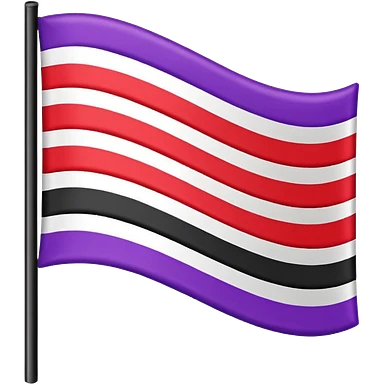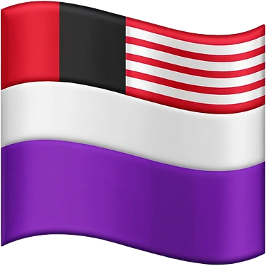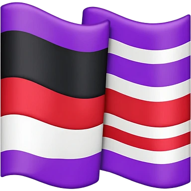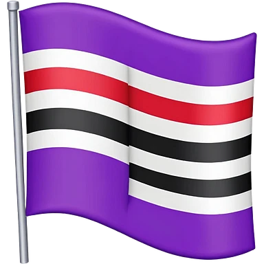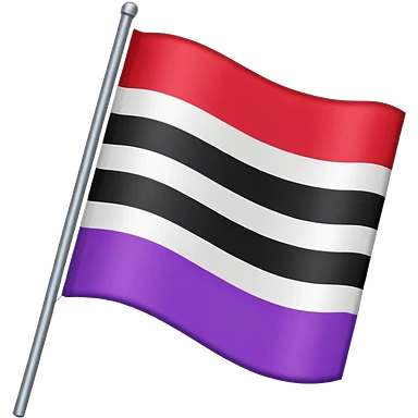 The emoji of a flag with three horizontal bars. The top bar is black, the middle bar is white, and the bottom bar is split in half. The bottom left is purple, and the bottom right is red emoji