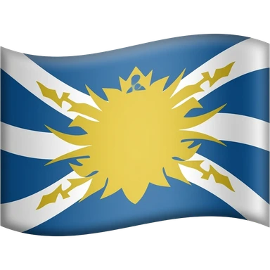The Assyrian flag features a golden sun at the center, symbolizing divinity. Wavy red, white, and blue lines represent courage, peace, and the Tigris-Euphrates rivers. Behind the sun is the Star of Ashur, and above it stands the Lamassu, a symbol of protection and strength. emoji
