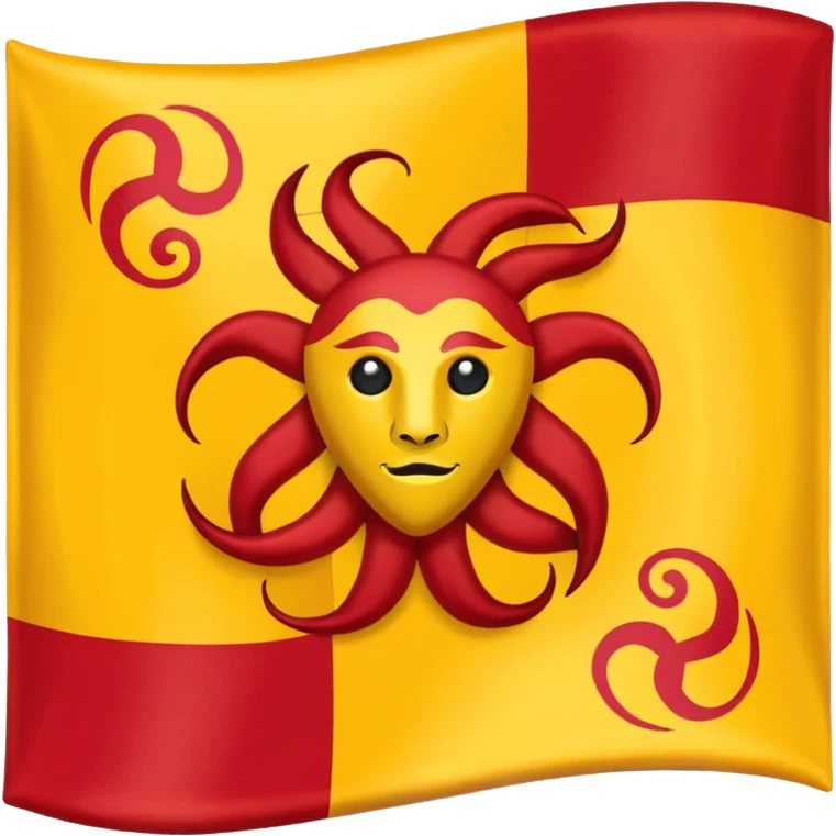 flag of Sicily with triskelion (three bent legs) and Gorgon's head at the center, diagonal split background red and yellow, clean emoji style emoji | AI Emoji Generator