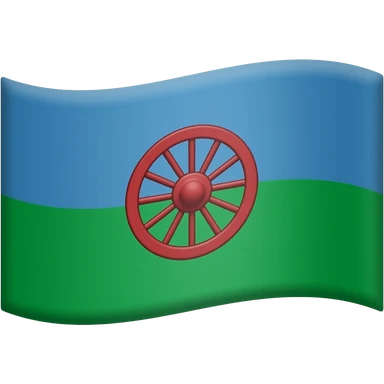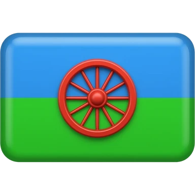 flag with bright blue top and bright green bottom horizontal, bright red wagon wheel in the middle emoji