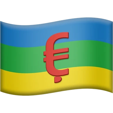 راية منقسمة ل جزء ازرق في اعلي تم اخضر في وسط تم اصفر في اسفل و رمز هو ⵣ بلاحمر emoji