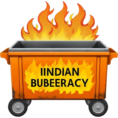 Flaming dumpster fire with the words "Indian bureaucracy" on the dumpster. emoji