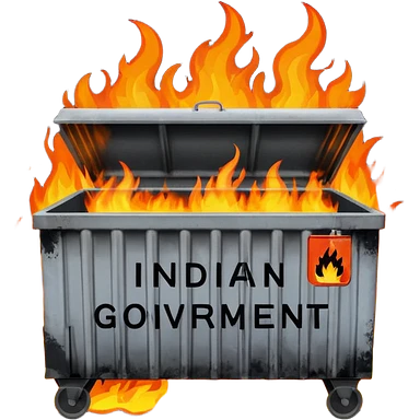 Flaming dumpster fire with the words "Indian government" on the dumpster. No typo. emoji