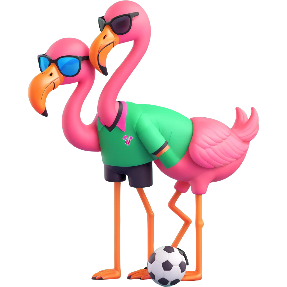 flamingo soccer player with sunglasses and a black and green jersey emoji | AI Emoji Generator