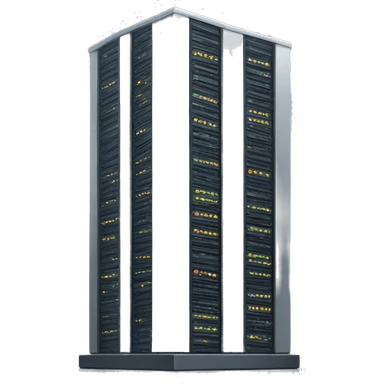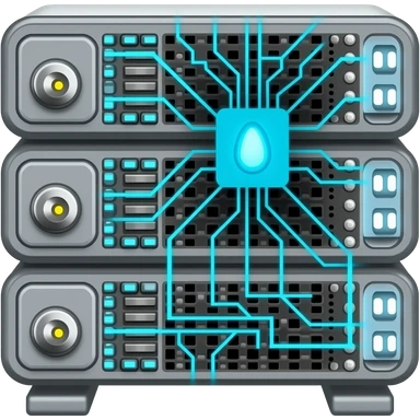 "Emoji representing a server rack machine with glowing blue circuit lines, interconnected neural network nodes on a digital screen, modern sleek design, flat vector style, transparent background." emoji