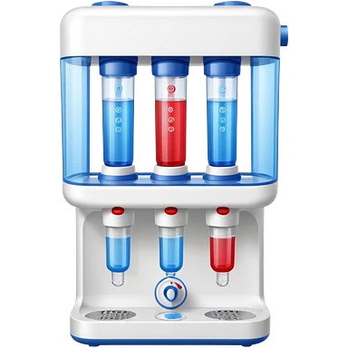 “Flat icon of a dual-temperature water purifier with red and blue nozzles, modern white body, clean vector style” emoji