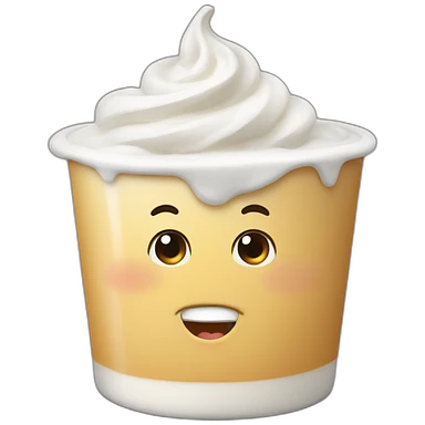 small yogurt cup with smooth rounded shape, open top showing creamy white yogurt inside, glossy slightly domed surface with subtle swirl or soft peak, plain unbranded white or light-colored cup, no spoon, fruit, or extras, soft lighting, subtle shadows, emoji scale emoji