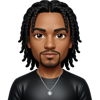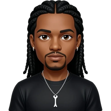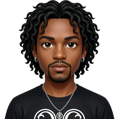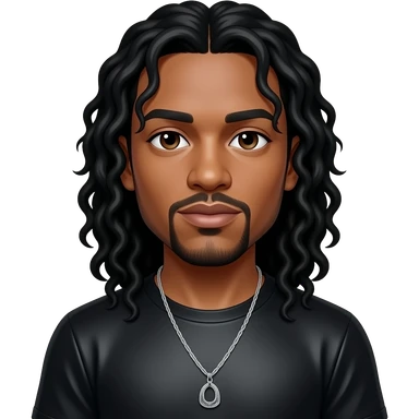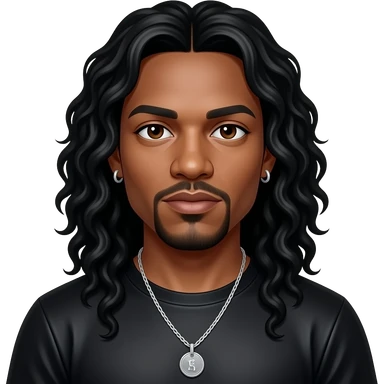 Layzie Bone from Bone Thugs-n-Harmony with dark brown eyes, long black wavy hair, black metallic t-shirt, necklace and earrings emoji