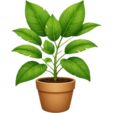 The potted plant has three large leaves inside. emoji